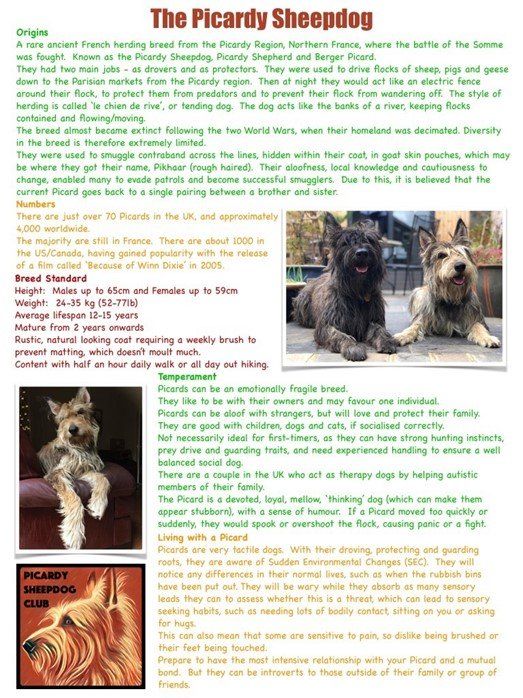is a rare and ancient French herding breed, prized for its intelligence, independence, and rustic good looks. Recognised in the UK by the Kennel Club (as Picardy Sheepdog) and gaining popularity across Europe, the Picard is known for its loyal yet discerning nature, trademark tousled coat, and expressive ears. While still uncommon on British shores, this versatile and charming breed is winning hearts with its unique blend of working ability and quiet companionship.